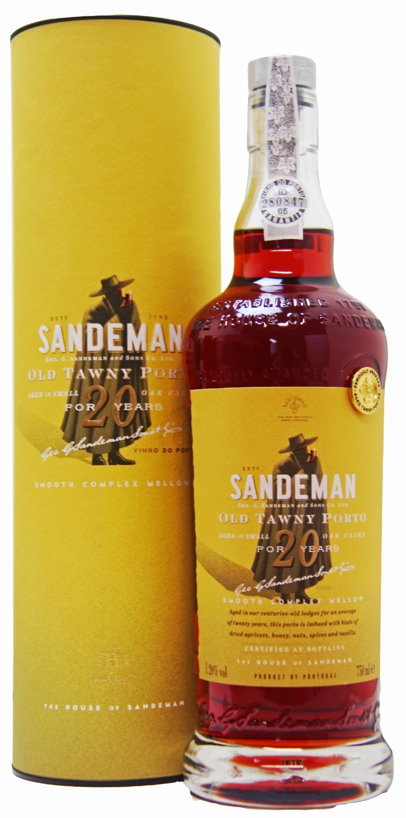 Sandeman Porto Tawny 20 Years Old is produced by the traditional Porto Wine method. The hand-picked grapes undergo stalk-removal and crushing before fermentation, under controlled temperature, with skin maceration so as to extract the best components. The addition of wine alcohol at the ideal moment sets the balance between the wine´s body and bouquet. This moment is chosen by the winemaker following strict control of fermentation temperatures and densities, the later depending on the vine variety, maturation stage and the final sweetness required.